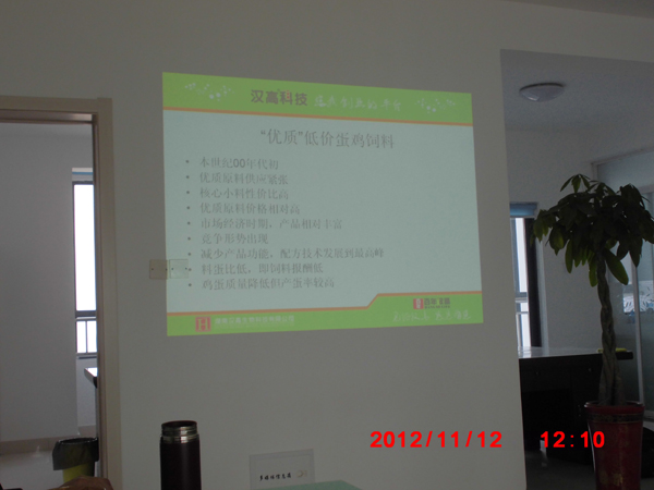 湖南漢高山東區(qū)第一屆營銷會議于2012年11月12日在山東臨沂召開,公司總部廖總、陳博士及山東區(qū)營銷分公司張德順總經(jīng)理及全體山東營銷員參加了此次會議,首先廖總對公司在山東的戰(zhàn)略思路和公司的情況給大家做了專題演講,廖總特別強調(diào)了產(chǎn)品對于市場的重要性,決心一定要打造一款適合山東區(qū)域的蛋雞料產(chǎn)品,技術(shù)以無抗生素為突破,不做跟隨者,推出我們自己的特色產(chǎn)品,在保證產(chǎn)品品質(zhì)的基礎(chǔ)上做到性價比最好,盡最大努力來滿足我們的廣大用戶需求。陳博士就公司蛋雞料的研發(fā)情況、產(chǎn)品特色、無抗產(chǎn)品的優(yōu)勢等給參會營銷員做了精彩的分享。最后張總對山東營銷員的工作進行了詳細部署,本次會議的召開拉開了我們?nèi)孢M入山東的序幕。