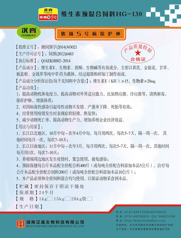 所在位置:網站首頁 → 中草藥保健(漢高寶) → 豬場5號病的保護神—漢高寶5號(HG-130)